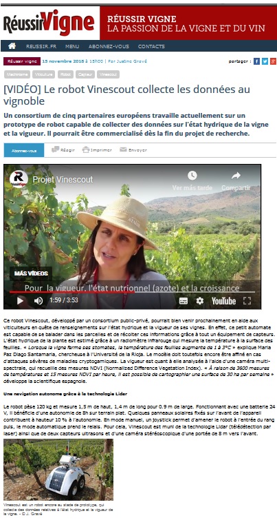 French - VineScout makes the COVER PAGE in RéussirVigne!