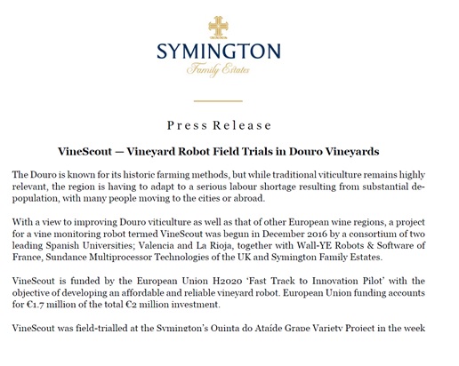 A project that targets the commercial arena of service robots for the wine producer can never take place in an isolated lab of an ivory tower; rather, it must be well grounded in typical vineyards, and press articles or media clips will offer the right channels to outlet the findings and results from the project.